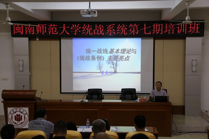 10月19日,我校统战系统第七期培训班在逸夫楼三楼梯教开班。校党委书记吴彬镪、漳州市委统战部部务会成员、调研员曾黄河、我校统战部部长欧阳红红及新一届民主党派、无党派人士人士联谊会及统战团体骨干成员近50人参加了会议。会议由欧阳红红部长主持。
