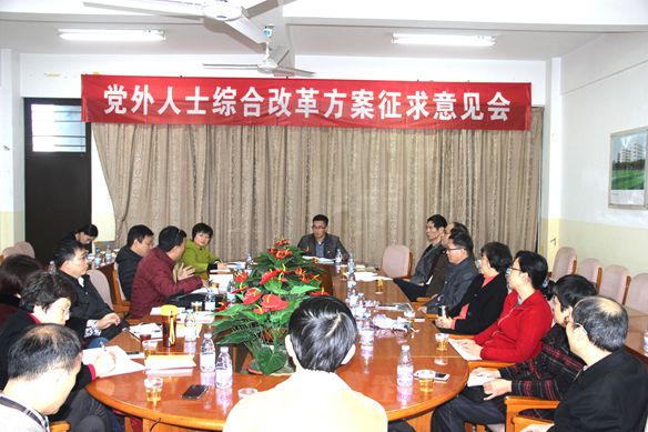 2016年1月15日下午3点,校党委副书记吴彬镪在综合楼六楼会议(二)主持召开了党外人士综合改革方案征求意见会。统战部部长欧阳红红、各民主党派主委、无党派人士联谊会会长、留学生同学会会长以及部分党外教授代表出席了座谈会。