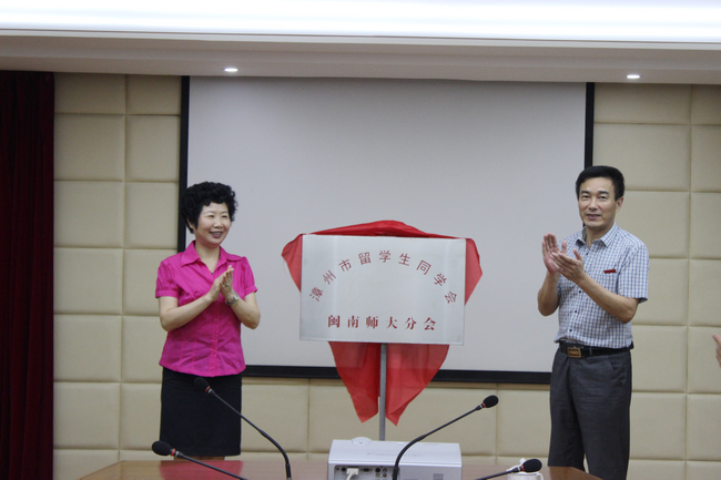 最后,李珊珊会长和吴彬镪副书记共同为漳州市留学生同学会闽南师大分会正式揭牌。