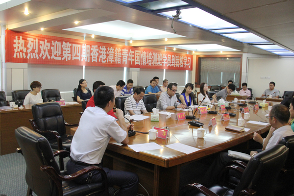 6月21日下午,第四期国情培训班的22名香港漳籍青年来到我校学习,与我校师生畅叙乡情、共话发展,热议“中国梦”。副校长李顺兴专程看望学员,漳州市委统战部、我校统战部、海外教育学院、生科学院、艺术学院、历史学院等单位领导出席交流活动。