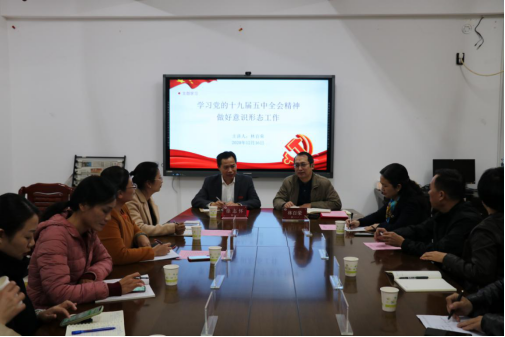 签约仪式结束后,林百荣为校宣传统战部党支部的同志们讲授题为《学习党的十九届五中全会精神做好意识形态工作》的党课。
