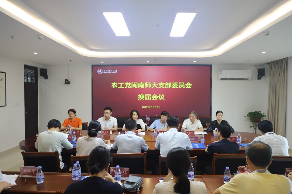 6月17日下午,农工党闽南师大支部在科技楼1507会议室召开换届会议。漳州市政协副主席、农工党漳州市委会主委何伟燕出席会议。农工党漳州市委会副主委黄金明、陈文礼,校党委宣传部、统战部部长徐继红、副部长张媛及农工党闽南师大支部党员参加会议。会议由农工党闽南师大支部主委陈春华主持。
