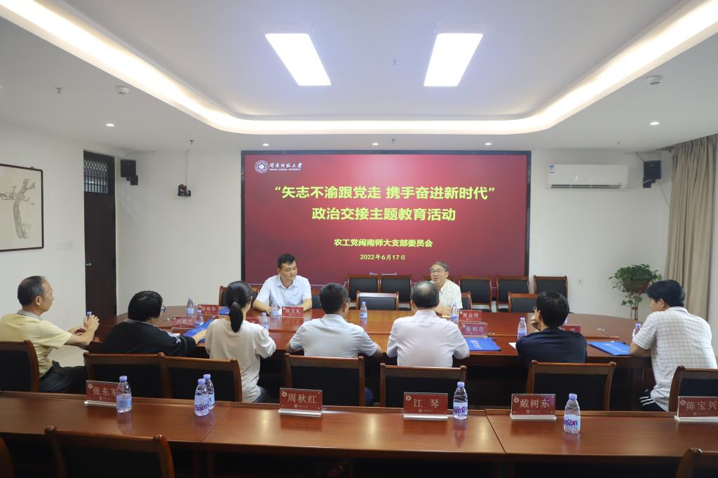 随后,农工党闽南师大支部开展“矢志不渝跟党走、携手奋进新时代”政治交接主题教育活动,农工党漳州市委会副主委黄金明为党员讲授主题党课。