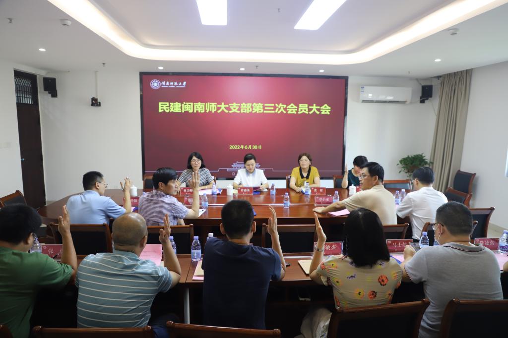 会议听取并审议了民建闽南师大支部委员会工作报告,选举产生新一届支部委员会,吴凤娇当选主任委员,刘华强当选副主任委员,胡敏杰、傅振中当选支部委员。
