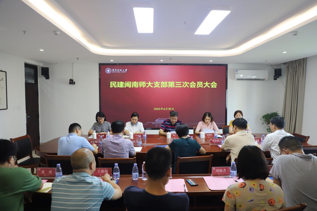 6月30日下午,民建闽南师大支部第三届会员大会在科技楼会议室召开。漳州市政协副主席、民建漳州市委会主委陈仁朝出席会议。校党委宣传部、统战部部长徐继红、副部长张媛,民建漳州市委会专职副主委兼秘书长许惠英、组宣科科长林美卿及民建闽南师大支部会员参加会议。会议由民建闽南师大支部主委吴凤娇主持。
