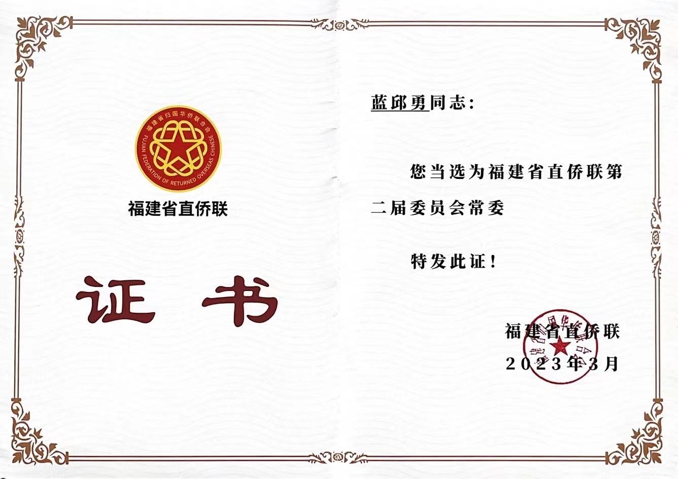 蓝邱勇当选福建省直侨联第二届委员会常委