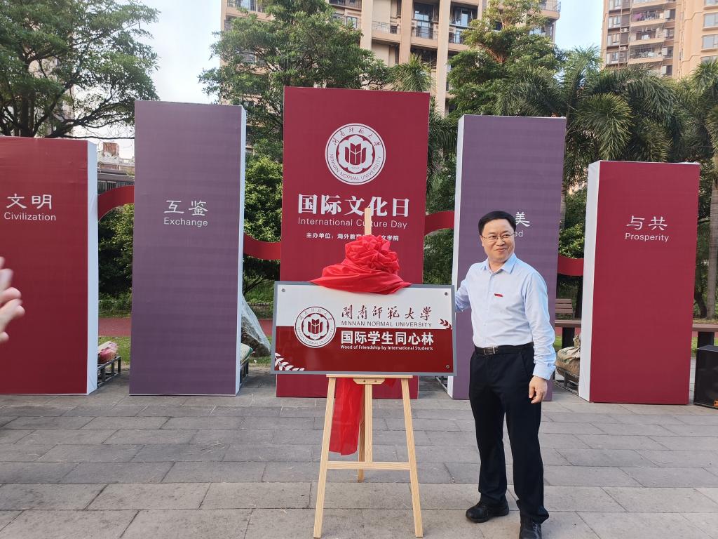 校党委常委、副校长林致远为“国际学生同心林”揭牌