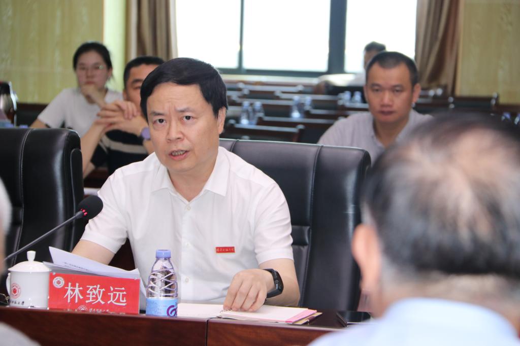林致远在研讨会开幕式上讲话。他对台湾竞争力论坛学会及厦门大学与会嘉宾表示热烈欢迎。他指出,近年来,国际形势与国际关系格局正在发生新的重大调整和变化。与会专家学者齐聚我校,共同研究探讨深化两岸各领域融合发展的成效、盲点和重要工作着力点,具有十分重要的借鉴价值,希望两岸同胞多交朋友、多往来、多沟通,共同探索海峡两岸融合发展新路。