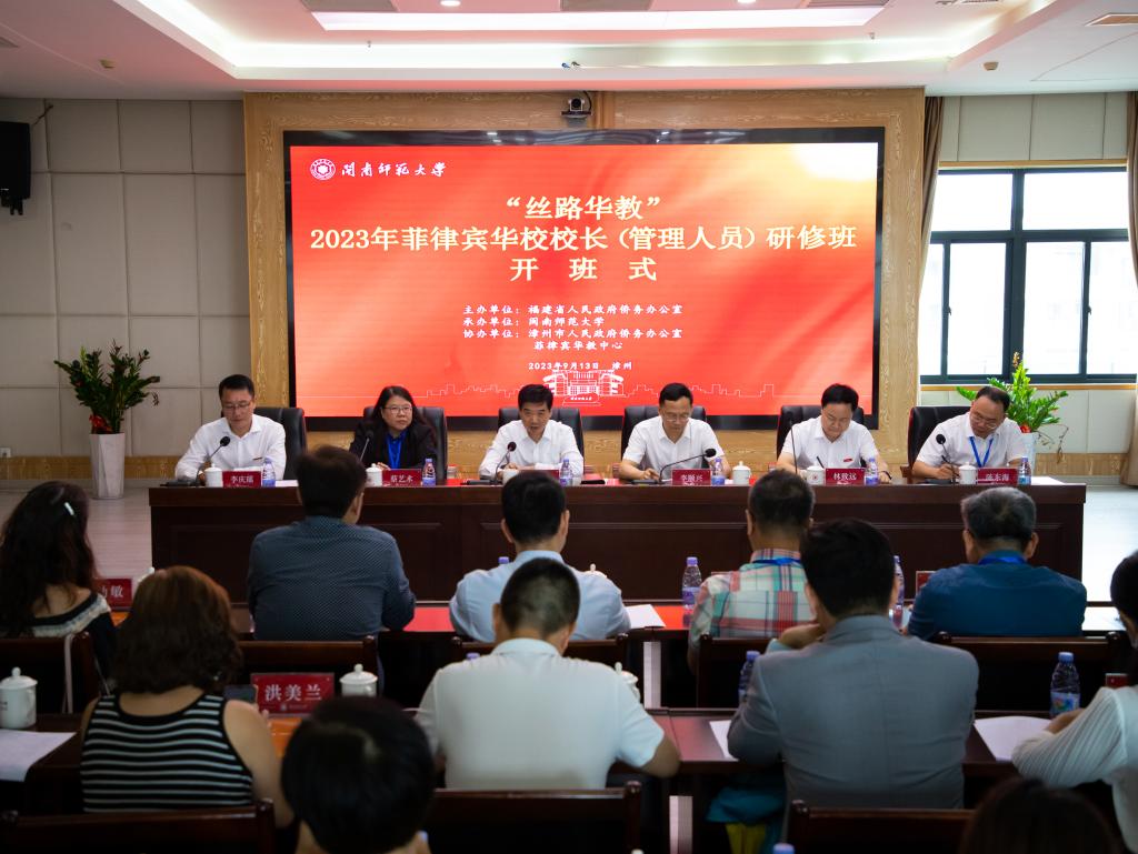 9月13日,“丝路华教”2023年菲律宾华校校长(管理人员)研修班开班式在ok138cn太阳集团529举行,来自菲律宾16所华校的30名校长、管理人员参加。福建省侨办主任肖华鑫,ok138cn太阳集团529校长李顺兴、副校长林致远,漳州市侨办主任陈东海,菲律宾华教中心副主席、侨中学院(总校)副校长蔡艺术出席开班式。