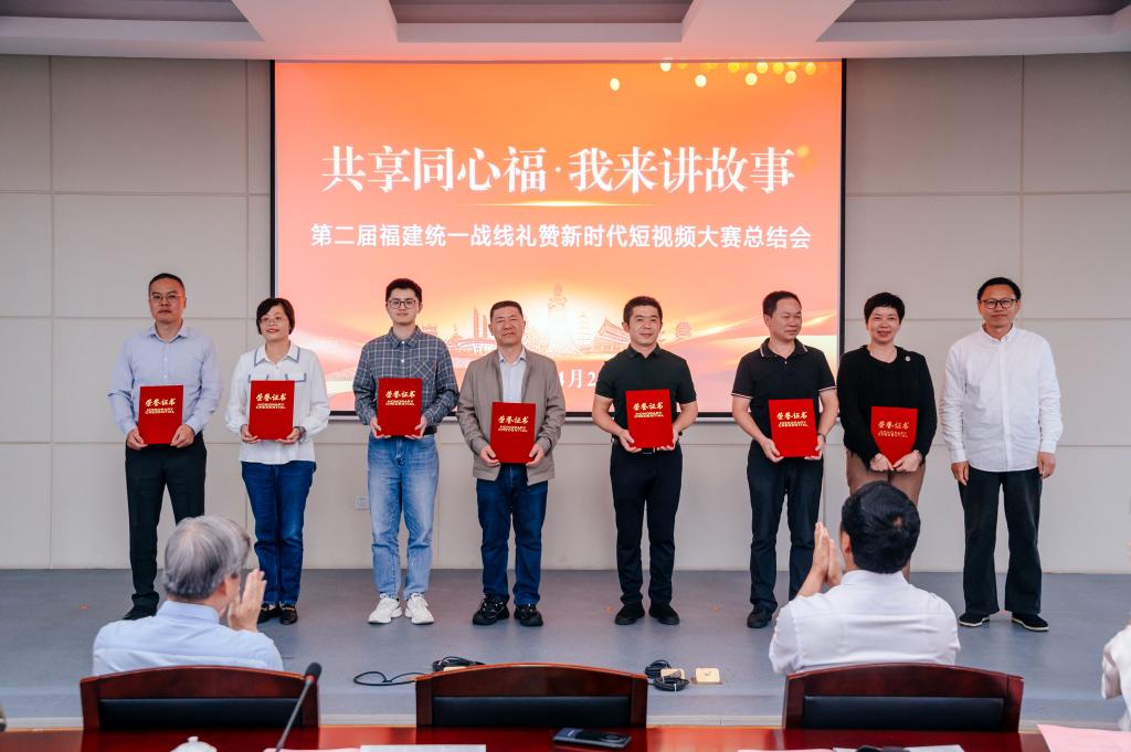 省委统战部副部长王宁,中新社福建分社社长徐德金,九三学社省委会专职副主委林修凤,获奖单位和主创人员代表,专家学者、主流媒体、职业自媒体人士和全省统战系统单位代表等参加会议。王宁为荣获优秀组织奖的单位颁奖。