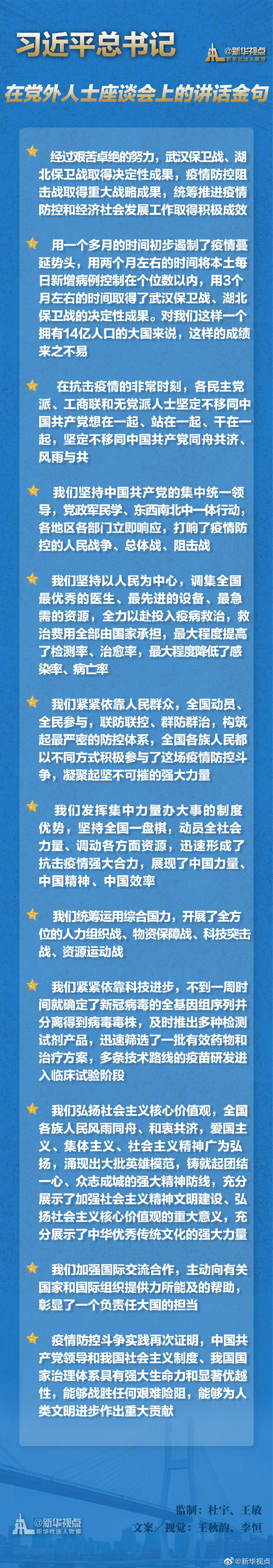 5月8日,中共中央在中南海召开党外人士座谈会,就新冠肺炎疫情防控工作听取各民主党派中央、全国工商联和无党派人士代表的意见和建议。在会上,习近平总书记的重要讲话鼓舞人心!