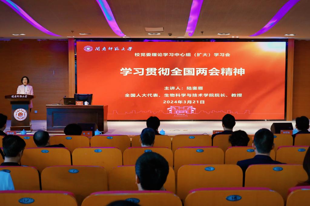 会上,我校全国人大代表、漳州市人大常委、民盟市委会副主委、生物科学与技术学院院长陆銮眉教授作题为《学习贯彻全国两会精神》的辅导报告。陆教授从“大会概况”“大会主要精神”“福建代表团履职情况”等几个方面介绍了2024年全国两会,重点传达了两会期间习近平总书记重要讲话精神、政府工作报告的主要内容。报告既有政治高度,又有亲历者的切身感悟,对与会人员深入学习贯彻全国两会精神具有重要指导意义。