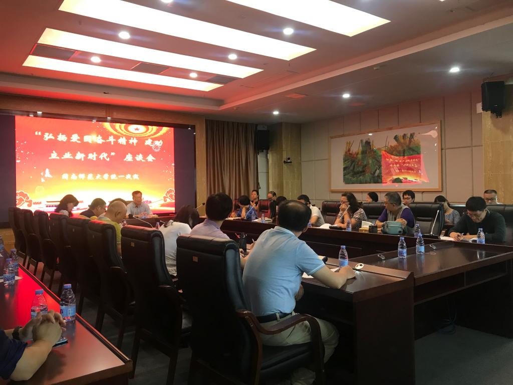 我校统一战线于5月24日下午在科技信息楼召开”弘扬爱国奋斗精神,建功立业新时代”座谈会。学校各民主党派、无党派人士及统战团体成员30多人参加。校党委副书记肖庆伟出席会议并讲话。