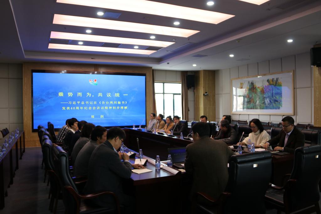 郑剑教授认为习近平总书记在《告台湾同胞书》发表40周年纪念大会的讲话,全面阐述了立足新时代,在民族复兴伟大进程中推进祖国和平统一的重大政策主张。讲话的主基调是统一。历史回顾围绕统一展开,核心要义围绕统一论述,重大结论围绕统一做出,清晰阐明了两岸统一的道义所依、民利所在、经验启示、现实进展、未来路径、时间节点等重大问题,擘画了海峡两岸中华儿女在携手推动中华民族伟大复兴进程中实现和平统一的宏伟蓝图。郑剑教授还重点阐述了习近平总书记在《告台湾同胞书》发表40周年纪念大会上的讲话主谈统一的五个方面主客观动因。
