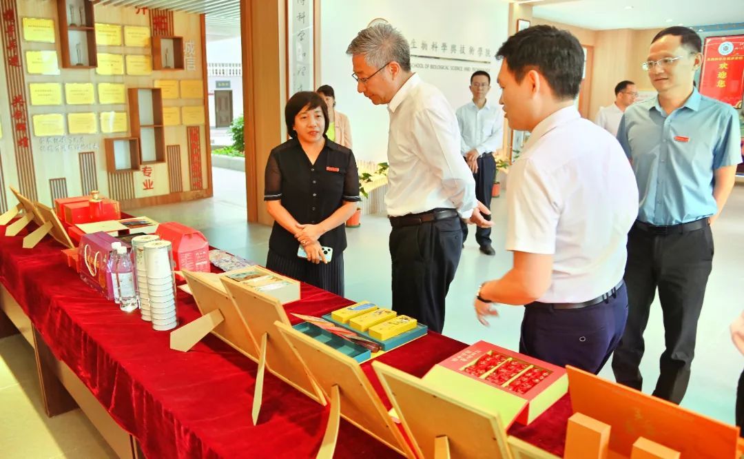 走访调研期间,李成林一行还在生物科学与技术学院党委书记连恩德和全国人大代表、生物科学与技术学院院长陆銮眉的陪同下参观了ok138cn太阳集团529“三创”工作成果暨校企合作部分精品展。