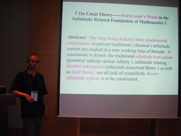 我校致公党主委欧阳耿副教授赴韩国首尔参加了8月12日--8月21日召开的第27届世界数学家大会,在“逻辑与基础”专题分会场上宣读了两篇论文:《论“极限论”----- 与“无穷”相关的数学基础研究四十年》和《芝诺悖论,贝克莱悖论和罗素悖论“三胞胎”悬案的解决-----与“无穷”相关的数学基础的革命》。欧阳老师论文中新的研究思路、所涉及的基础理论以及相关的研究工作引起到会数学家的极大的兴趣。与会数学家一致认为数学哲学和数学基础理论研究很重要、但一直是个薄弱的环节,应该加强、应该努力、应该合作。